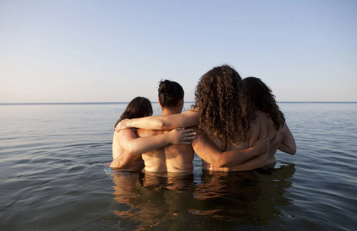Photographer, Miana Jun, and Author/survivor, Rebecca Pine, share stories and photographs of participants, with scars bared in the sea. The Breast and the Sea, an expression of the many voices of breast cancer, helps to normalize the changing bodies of those who have been touched by this disease.